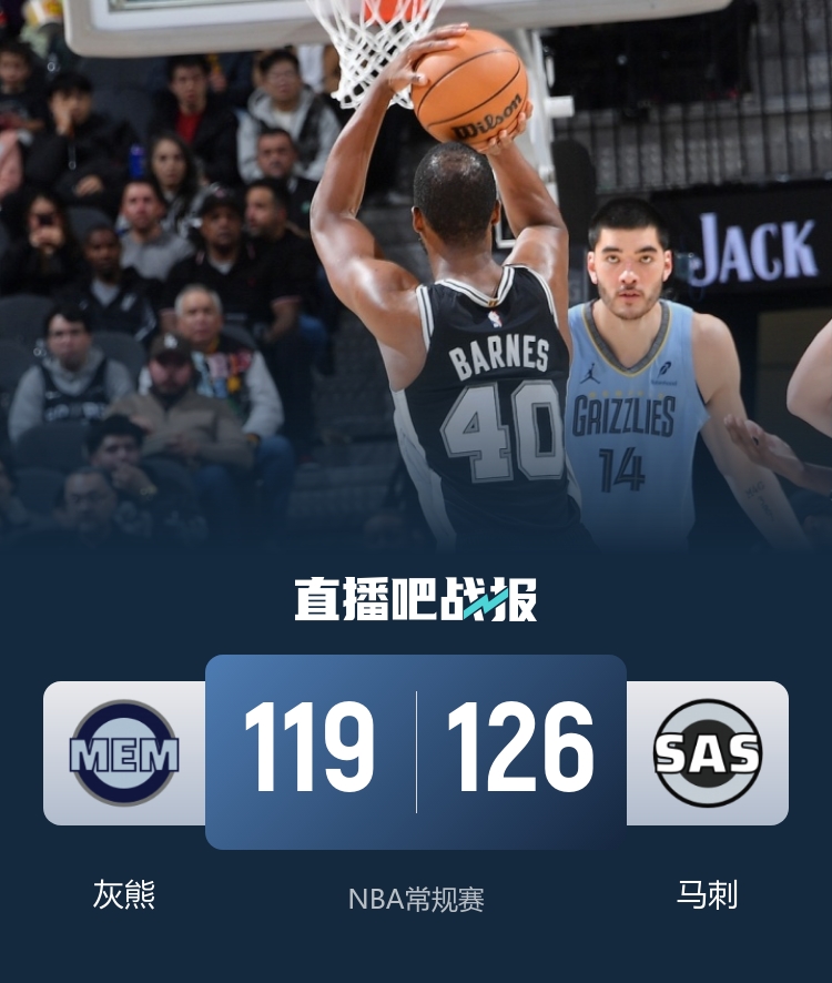 12月3日讯 NBA常规赛继续进行,马刺坐镇主场迎战灰熊队,此前马刺13胜6负位列西部第5,灰熊则是9胜12负排名西部第9,此役文班,莫兰特等人继续缺阵。