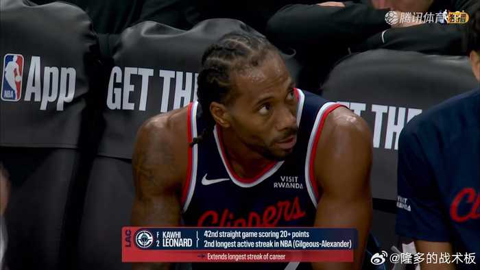 伦纳德半场21分,已经连续42场比赛得分上20