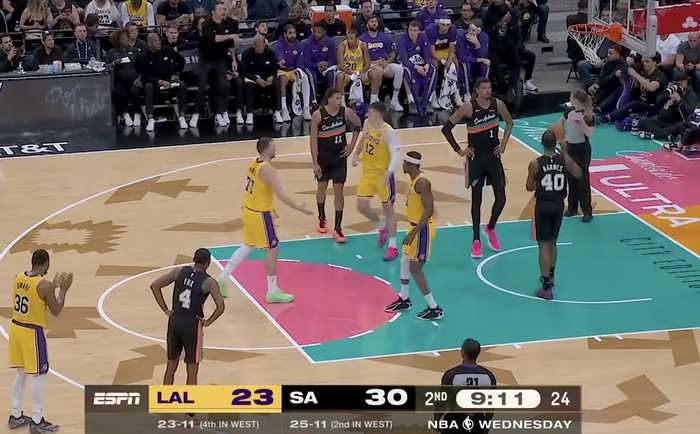 湖人第二节,三分钟没有得分,直到东契奇上来罚球。